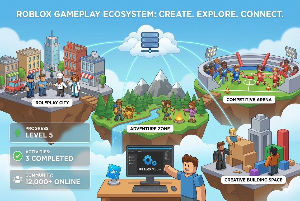 Roblox es una plataforma de entretenimiento interactivo que combina videojuegos, creación de contenido y experiencias sociales en un solo entorno digital. A diferencia de otros