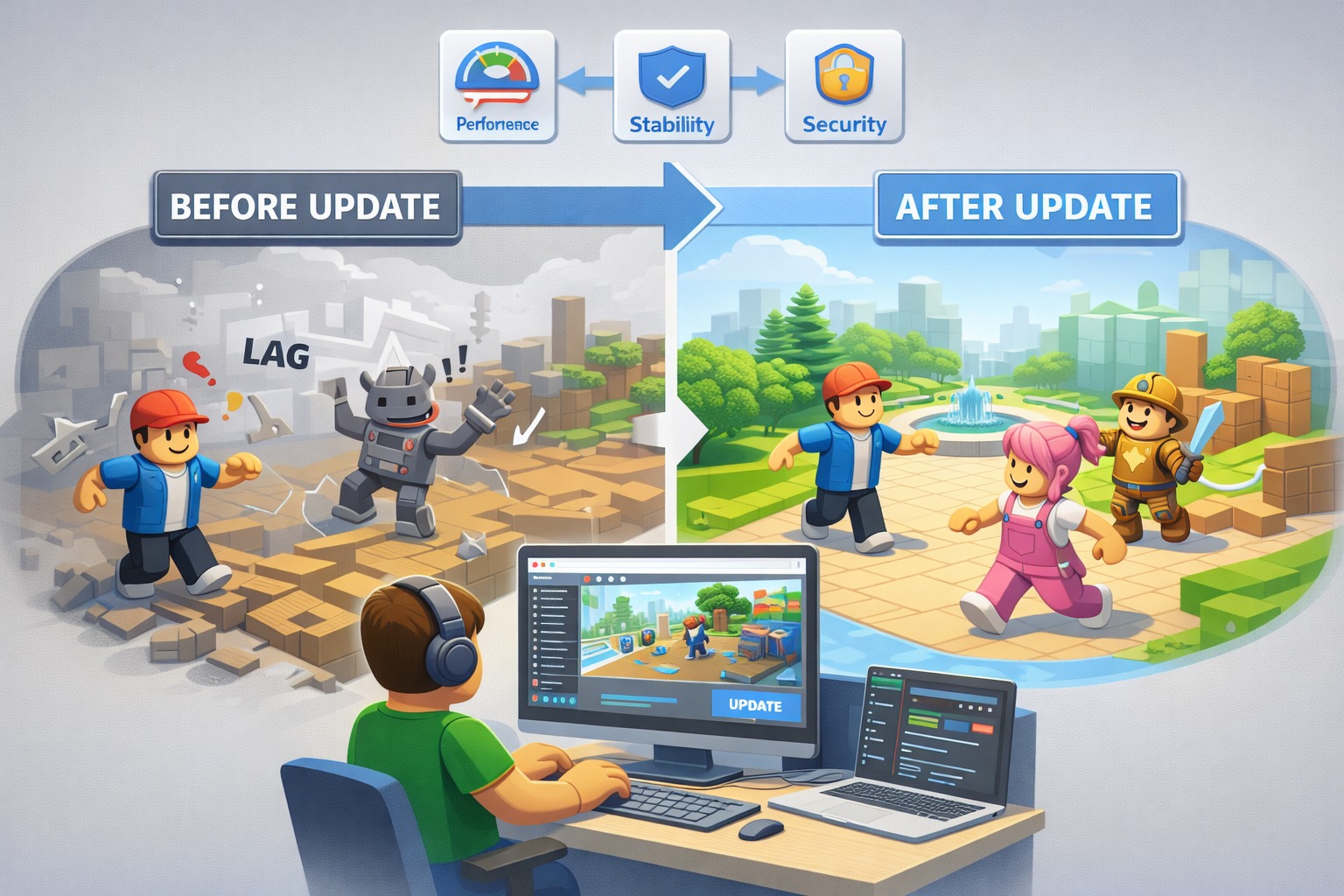 Las actualizaciones son un componente esencial en el desarrollo y mantenimiento de Roblox como plataforma digital. A diferencia de los videojuegos tradicionales que reciben actualizaciones